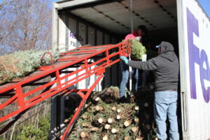 There were 56 loading stations for the trees, with two official North Carolina sites at the Upper Mountain Research Station in Laurel Springs and the NC Cooperative Extension Service Avery County Office in Newland. It takes a lot of work to gather and tag the trees and manage a loading event on a designated day. We rely on FFA and ROTC students from Ashe, Alleghany and Avery County to help load the trees. Local schools help fill out tags sending personal greetings to service families on each tree.