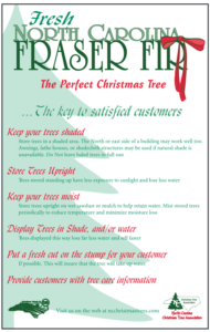 Retailer Information Articles for Retailers: Sales and Relationships with Growers Climate and Retail Lot Considerations Evaluating Freshness Grading Moisture Control Fire Safety Pests Split Trunks Retail Lot Calendar Why NC Fraser Fir ADVERTISERS Cornett Carolina Trees Carolina Wreath Company/Sharpe Tree Farm Peach Bottom Christmas Tree Farm Fraser Knoll