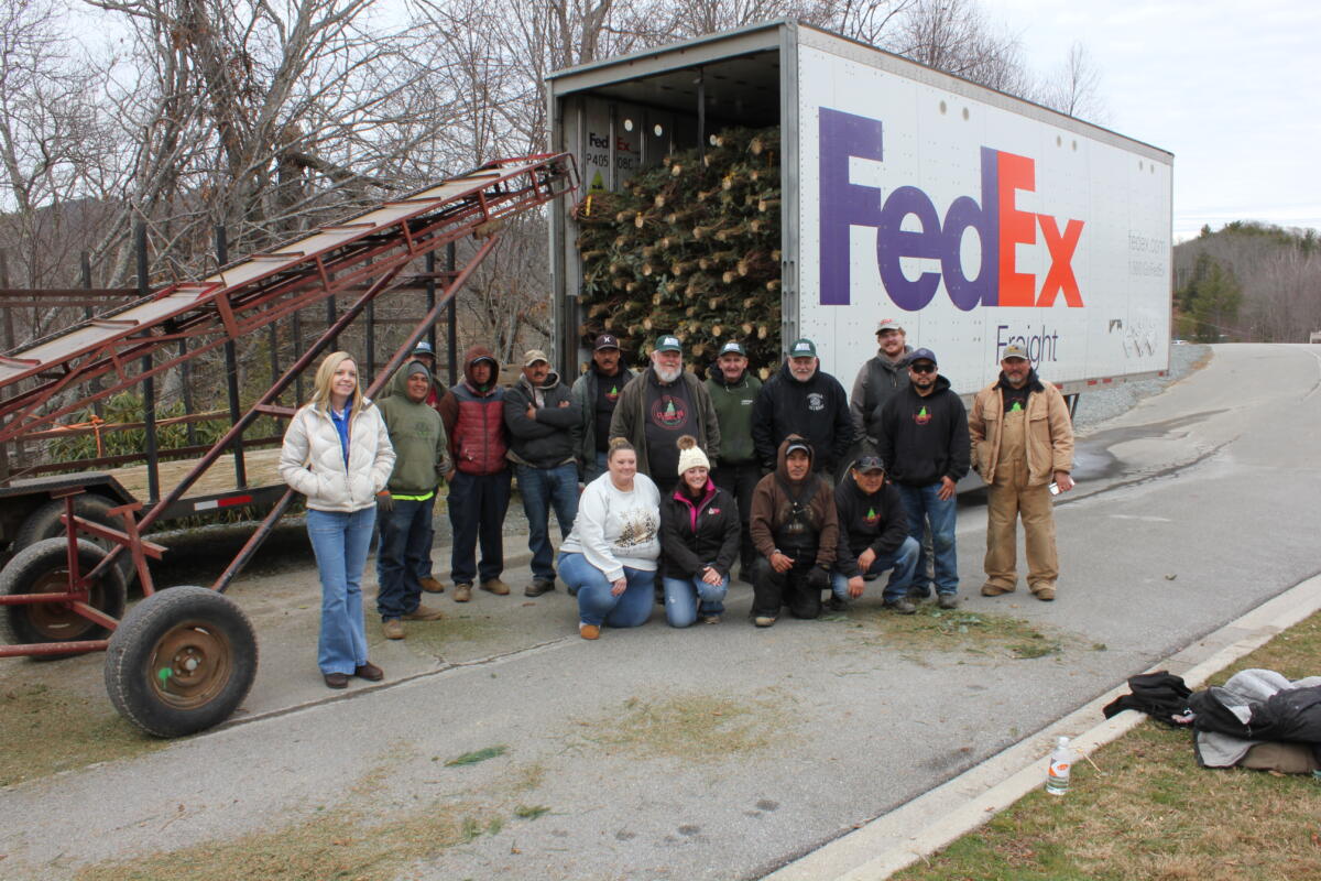 Trees collected at the Upper Mountain Research Station in Ashe County & at the Avery Cooperative Extension Office in Newland were loaded on FedEx trucks by volunteers and sent to Fort Bragg, Fort Benning and MCAS Cherry Point. Thanks to everyone who helped out! There will be a lot of service member families on bases that will get to enjoy the cheer that a real Christmas tree will bring to their homes this holiday season.