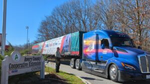 The tree’s journey from the Pisgah National Forest to the West Lawn of the U.S. Capitol building over the course of two weeks consisted of 14 stops in local communities from the mountains to the sea across North Carolina, plus two stops in Virginia. NCCTA was proud to host, along with the Avery County Cooperative Extension and the County of Avery, a tour stop in Newland on Tuesday, November 8.  Well-wishers had the opportunity to sign the banners on the truck’s sides, learn more about national forests, shop for U.S. Capitol Christmas Tree merchandise, and learn about the NC REAL Christmas Tree Industry.